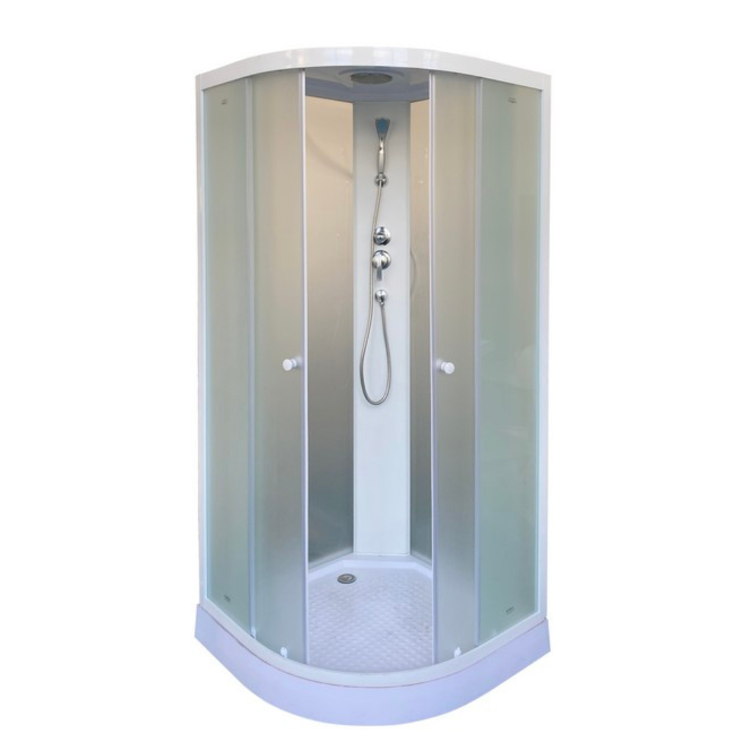 Лучшие цены. Кабина EF831 душевая PARLY (80х80х210) Размер: 80х80х210 см Бюджетная компактная кабина – отличный выбор для маленькой ванной комнаты и дачи. Светлая кабина визуально расширяет пространство, а полукругла форма экономит полезную площадь в санузле. Достоинства: Закаленное стекло, 4 мм. Матовое полотно не прихотливо в уходе. Задние стенки – закаленное матовое стекло, 4 мм. Профиль: белый алюминиевый. Устойчив к образованию коррозии, не деформируется при перепадах температуры и влажности. Магазины в вашем городе.