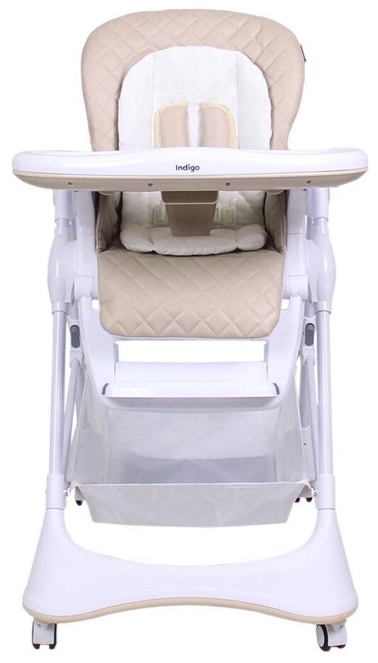Лучшие цены. Стульчик для кормления Indigo Elegant Е101 - сочетается продуманный дизайн, удобство и функциональность. Подходит детям от 5 мес. до 3 лет. Особенности: Регулировка наклона спинки: 3 положения Пластиковая столешница Съемный поднос Регулировка столешницы по глубине: 3 положения Регулировка подножки: 3 положения наклона и 3 положения по высоте Регулировка стула по высоте: 7 уровней Ремень безопасности: 5-точечные Колеса: со стопорами Корзина для игрушек: съемная, сетка Материал: съемный чехол из эко-кожи. Магазины в вашем городе.