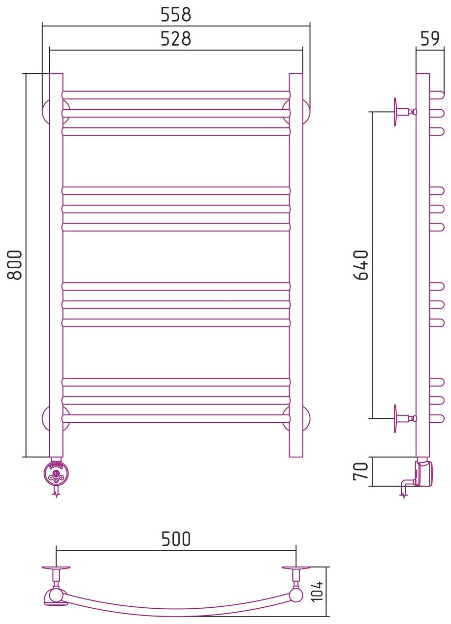 Полотенцесушители Полотенцесушитель электрический стилье "Формат 10 ТЛ" 800х500 (3+3+3+3) Г16