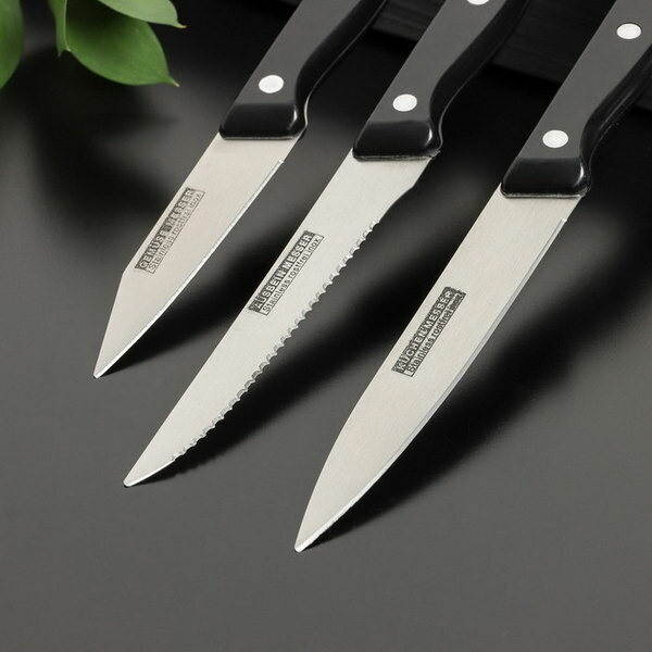 Набор кухонных ножей Кулинарные изыски, 3 предмета, лезвие 8 см, 11 см, 11 см, цвет чёрный