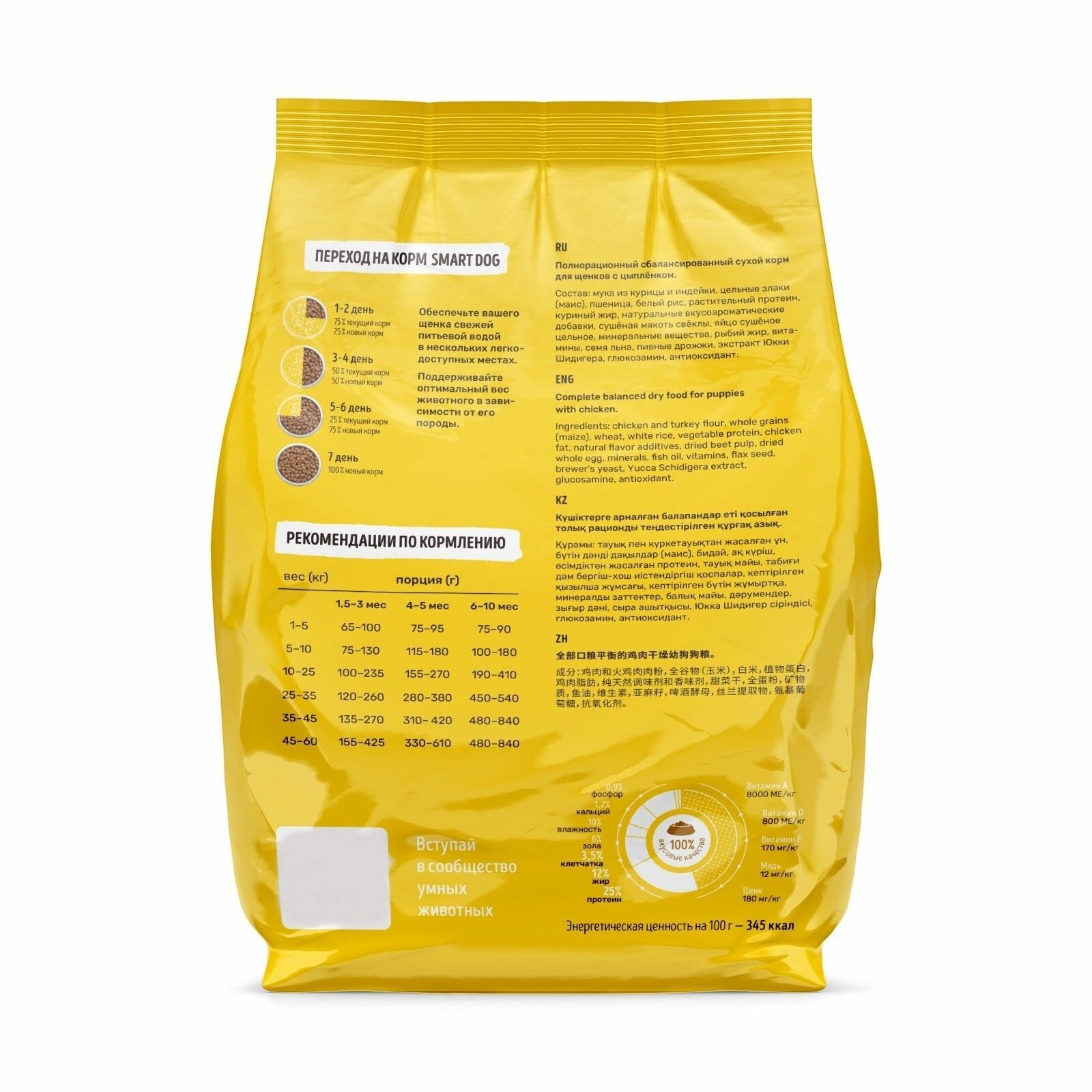 Корм сухой Smart Dog для щенков с цыпленком, 3 кг