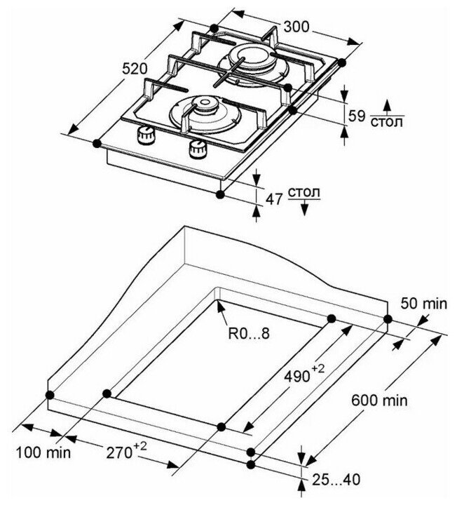 | Размеры для встраивания (ШхГ) | 268x496 мм |