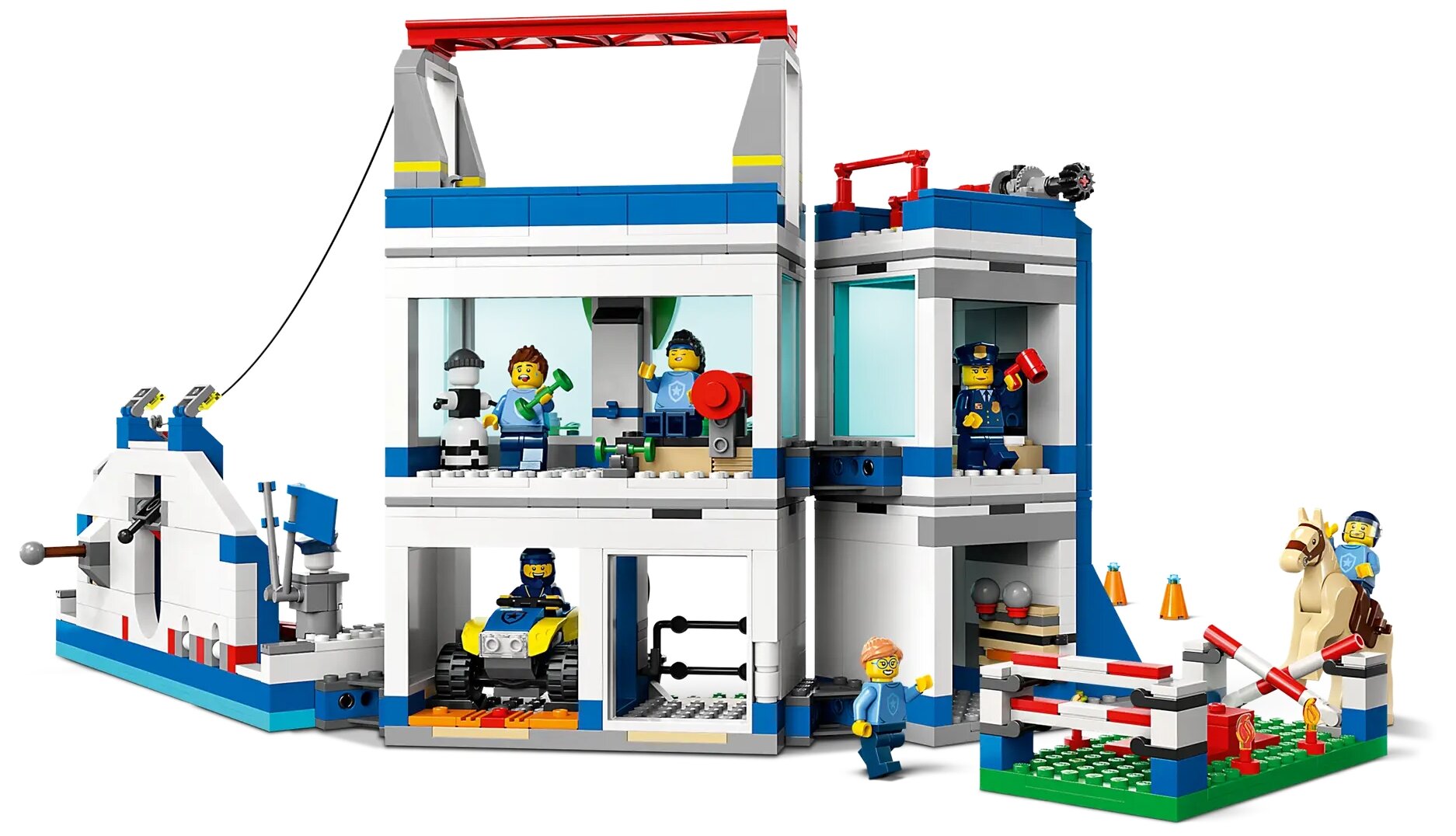 Лучшие цены. Набор LEGO® City Police Training Academy (60372) включает в себя модульный многокомнатный полицейский участок и открытую полосу препятствий с развлекательными сооружениями, включая игрушечную стену для скалолазания, перекладины и зип-лайн. В комплект также входят управляемый квадроцикл, 6 мини-фигурок и фигурка лошади. Интерактивное цифровое руководство добавляет веселья при постройке Этот многофункциональный строительный набор поставляется с простым наглядным печатным руководством по строительству и. Магазины в вашем городе.