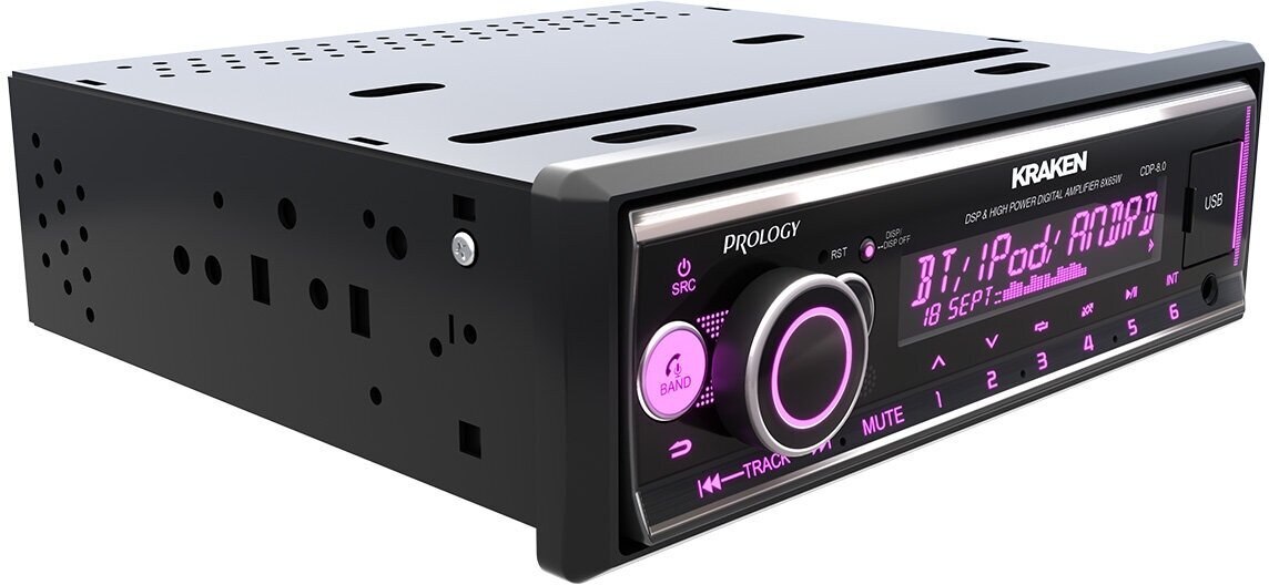 Автомагнитола PROLOGY CDP-8.0 KRAKEN, 1DIN, 8 канальная, BT/FM/USB/аудиопроцессор DSP, FM/ УКВ/MP3/WAV/FLAC, управление телефоном через BT