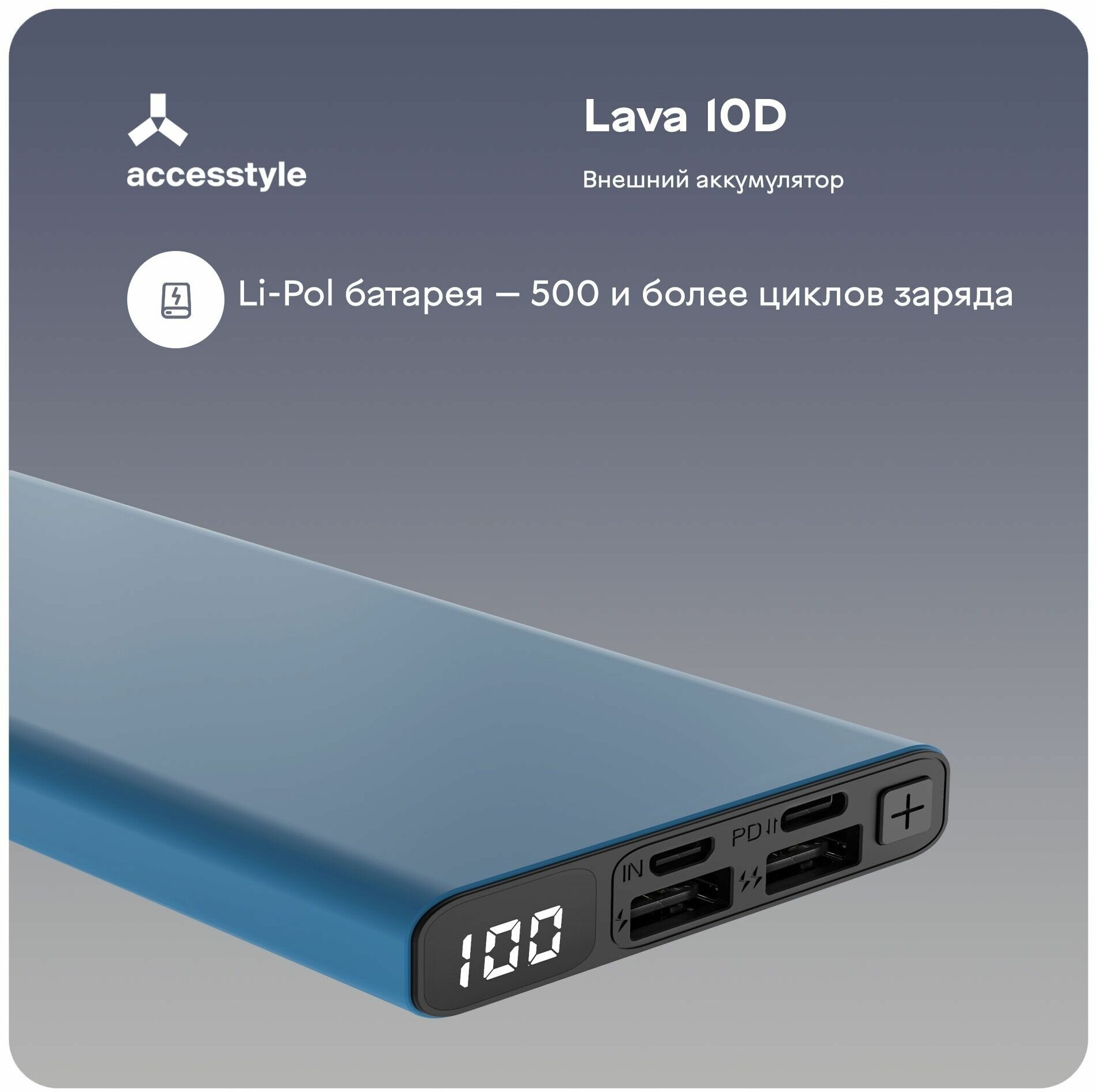 Внешний аккумулятор Accesstyle Lava 10D, 10000 mah с дисплеем, синий 1 154 ₽ Подробнее