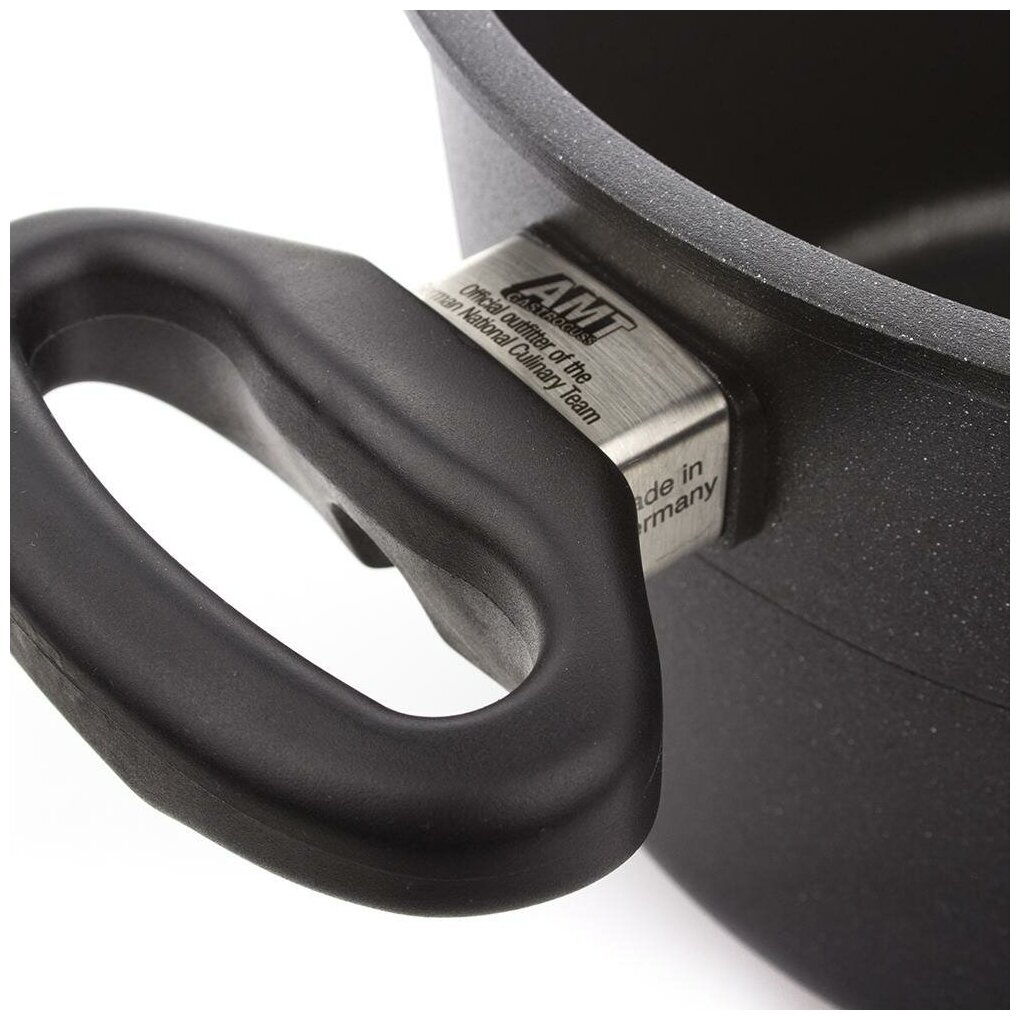 Лучшие цены. Литейная продукция компании AMT – это наилучшее качество изделий при высочайшем исполнительском и технологическом уровне. Благодаря особо прочному дну, изготовленному из литого алюминия, и имеющему толщину 10 мм, весь корпус изделия обладает превосходным теплопоглощением и оптимальной теплопроводностью. Деформация термодна невозможна даже при высоких температурах. Логотип с указанием номера партии и даты производства наносится на дно кастрюли при помощи лазера. Магазины в вашем городе.