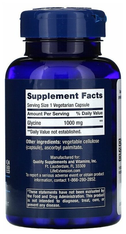 Аминокислоты Life Extension Glycine 1000 мг (Глицин) 100 капсул (Life Extension)