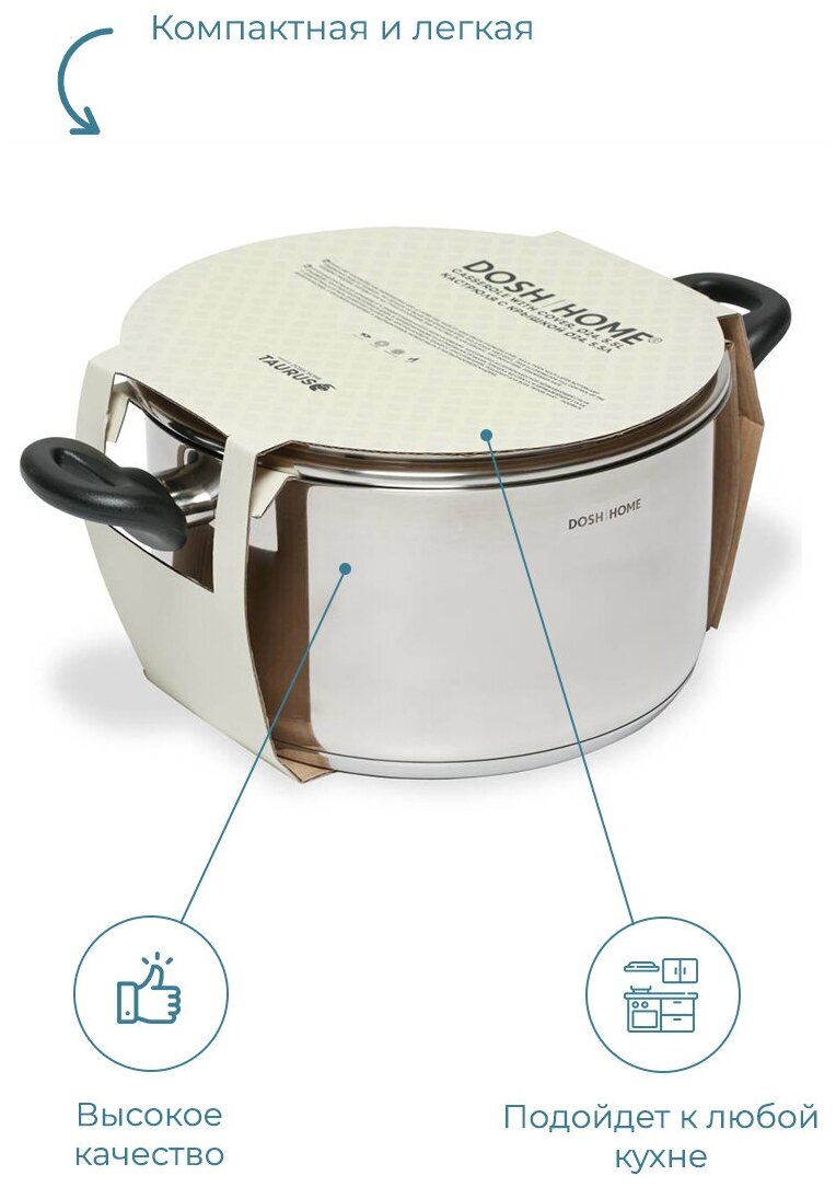 Кастрюли Кастрюля, DOSH | HOME, TAURUS, с крышкой d24, 5,5л