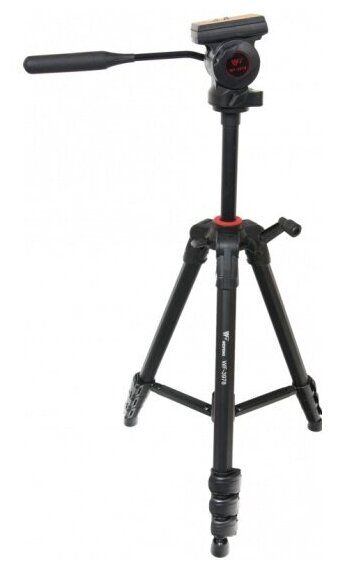 Лучшие цены. Алюминиевый универсальный легкий видеоштатив, который может использоваться как для фото, так и для видеосъемки. Фиксация ног - клипсами. Головка видео съемная, с быстросъемной площадкой. Видеоголовка - улучшенная, имеет удлиненную съемную ручку, демпфер, возвратный механизм в горизонтальное положение и плавный ход для видеосъемки. Плечи штатива усилены для лучшей жесткости. Реечный механизм поднятия и спуска головки. Два пузырьковых уровня - на плече и на головке штатива. Крюк для подвеса груза. Магазины в вашем городе.