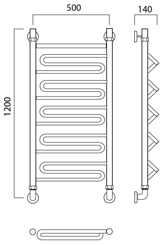 Лучшие цены. Полотенцесушитель водяной Акванерж Зиг-заг с полкой 1200х500 мм, 5 секций, универсальное подключение. Тип Вид полотенцесушителя: Лесенка с полкой Высота полотенцесушителя: 1200 мм Ширина полотенцесушителя: 500 мм Межосевое расстояние: 500 мм Подключение: Диагональное / нижнее, Вертикальное, Боковое Материал: Нержавеющая сталь Цвет: Хром Секции: Стационарные Вид перемычки: Выпуклая - элипсообразная Количество секций: 5 Диаметр основных стоек: 32 мм Диаметр поперечных перекладин: 18 мм Рабочая температура: До. Магазины в вашем городе.