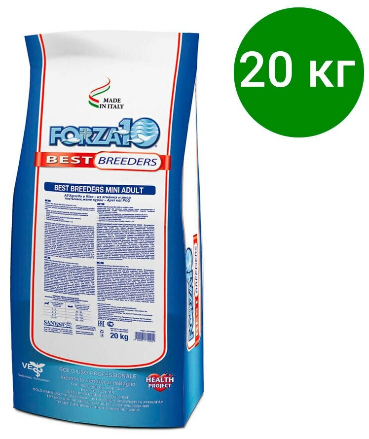 Лучшие цены. Сухой корм Forza10 BEST BREEDERS Adult Mini&Medium al Agnello&Riso, для взрослых собак мелких и средних пород с Ягненком и рисом, 20кг BEST BREEDERS MINI ADULT из ягнёнка и риса FORZA10 BEST BREEDERS MINI ADULT из ягнёнка и риса – это полнорационный cухой корм для взрослых собак мелких и средних пород. Использование мяса ягнёнка выращенного на открытых пастбищах, натуральные очищающие организм вещества (DETOXEFFECT). Магазины в вашем городе.