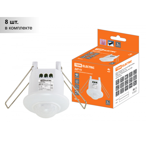 Датчик движения точечный Tdm Electric ДДТ-02 40мм, 800Вт, 10-900с, 6м, 3+лк, 120(сбоку)+360(сверху)гр., IP20, SQ0324-0026
