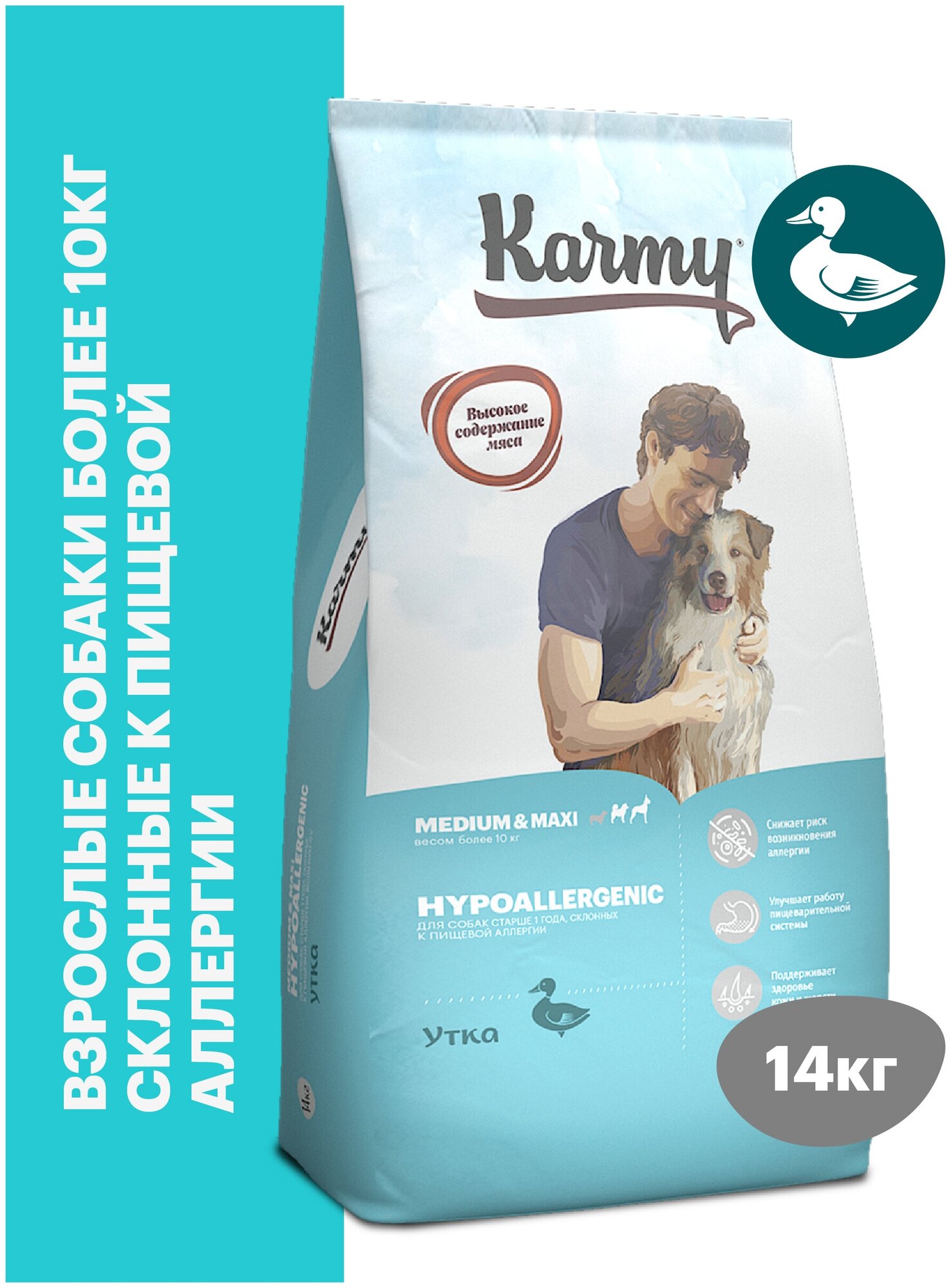 Сухой корм Karmy Hypoallergenic Medium&Maxi Утка - для собак средних и крупных пород, склонных к пищевой аллергии 14кг