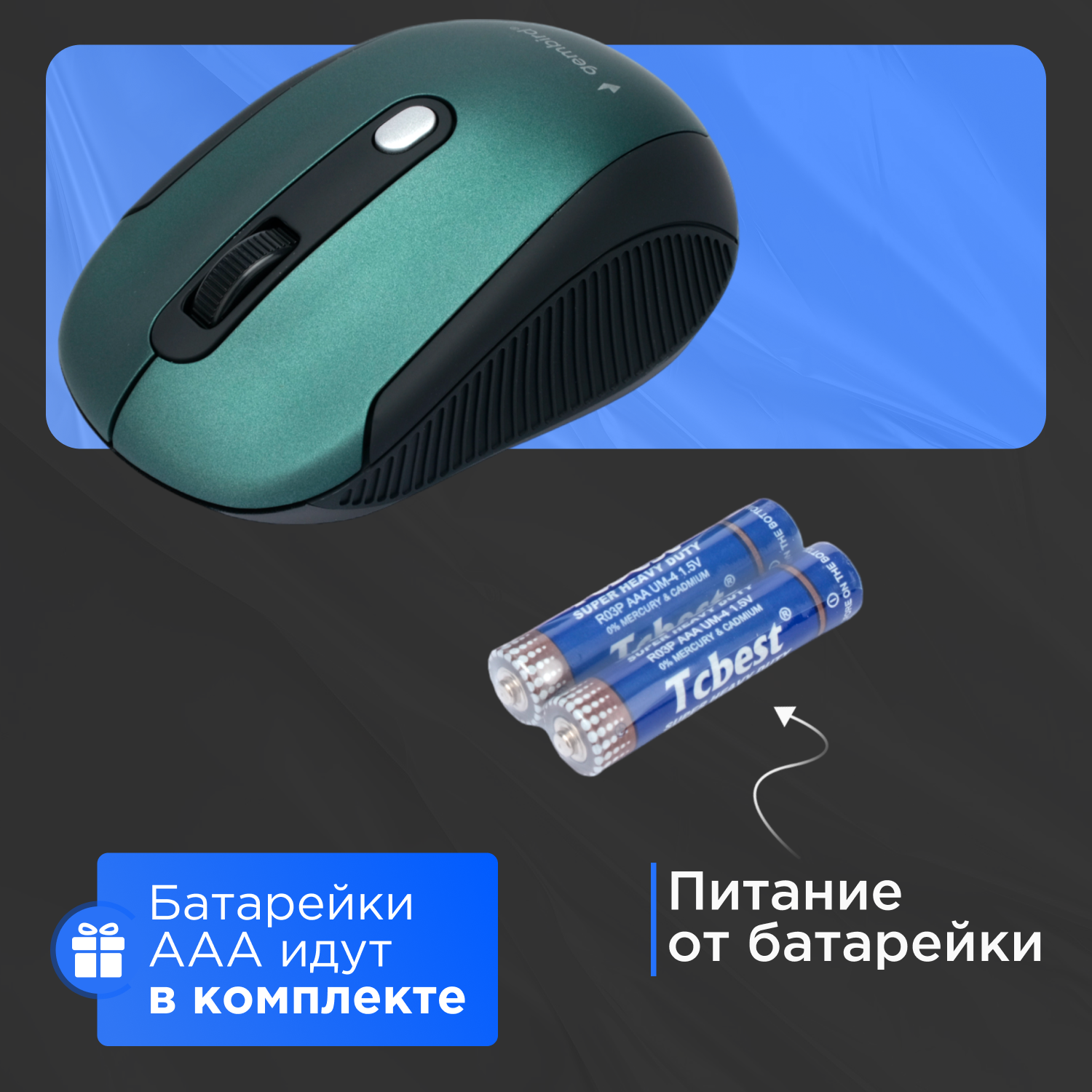 Мышь беспроводная Gembird MUSW-420-2, 2.4 ГГц, зеленый, 4 кнопки, 1600DPI