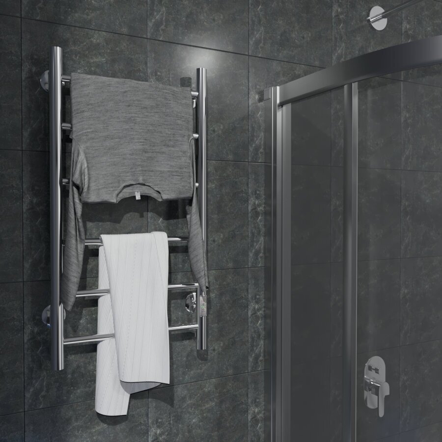 Лучшие цены. Изделие производится из нержавеющей стали AISI 201. Вертикальные трубы d -32 мм, для горизонтальных вставок используется труба d 18 мм. Нагревательным элементом в полотенцесушителе является греющий кабель аналог теплого пола, кабель заправляется внутрь каждой трубы и передает тепло на поверхность изделия. Во включенном состоянии постоянно поддерживается температура 50-600. Экономичность: Полотенцесушитель снабжен панелью управления. Магазины в вашем городе.