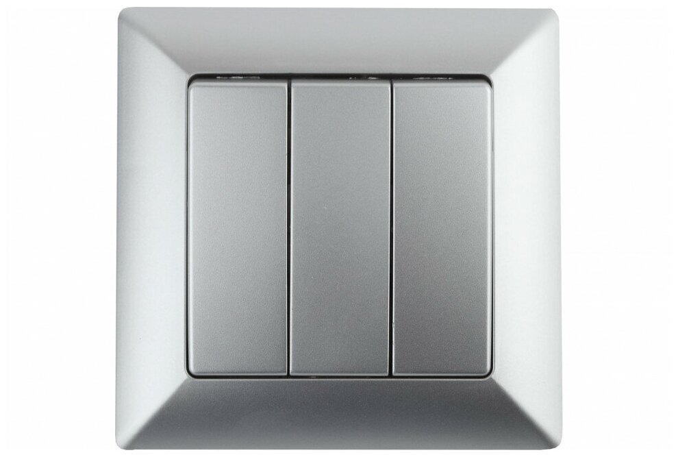 Выключатель Типы/Электротовары/Выключатели ЭРА Выключатель трехклавишный ЭРА Intro Solo 10A 250V серебро 4-106-03 Б0043300