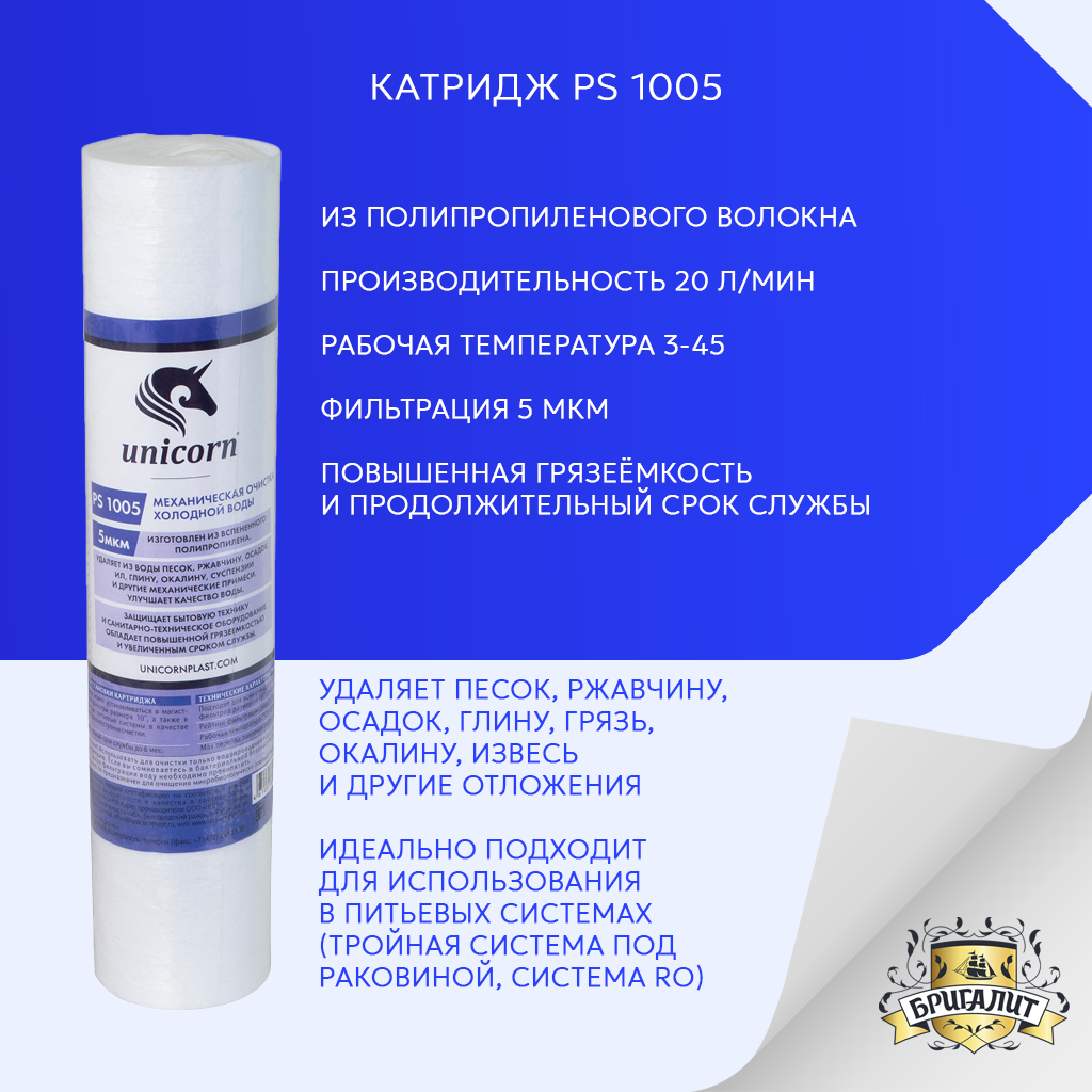 Картридж для воды Комплект картриджей Unicorn K-ST, PS-10. FCST-10. FCA-10, очистка+умягчения воды Unicorn