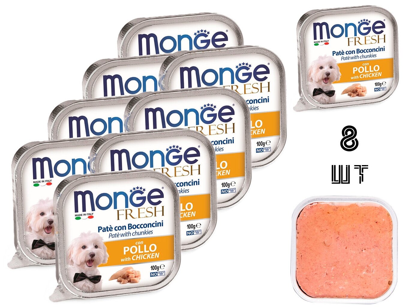 Корм для собак Влажный корм для собак Monge Fresh PATE e BOCCONCINI con POLLO, курица, 8 шт. х 100 г