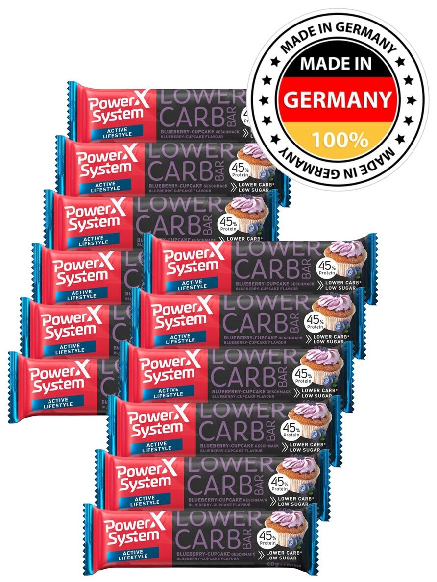 Протеин Power System Lower Carb Bar (Черничный маффин) 12х40г / Протеиновый батончик (45% белка) без сахара с коллагеном для похудения и набора мышечной массы женщин и мужчин