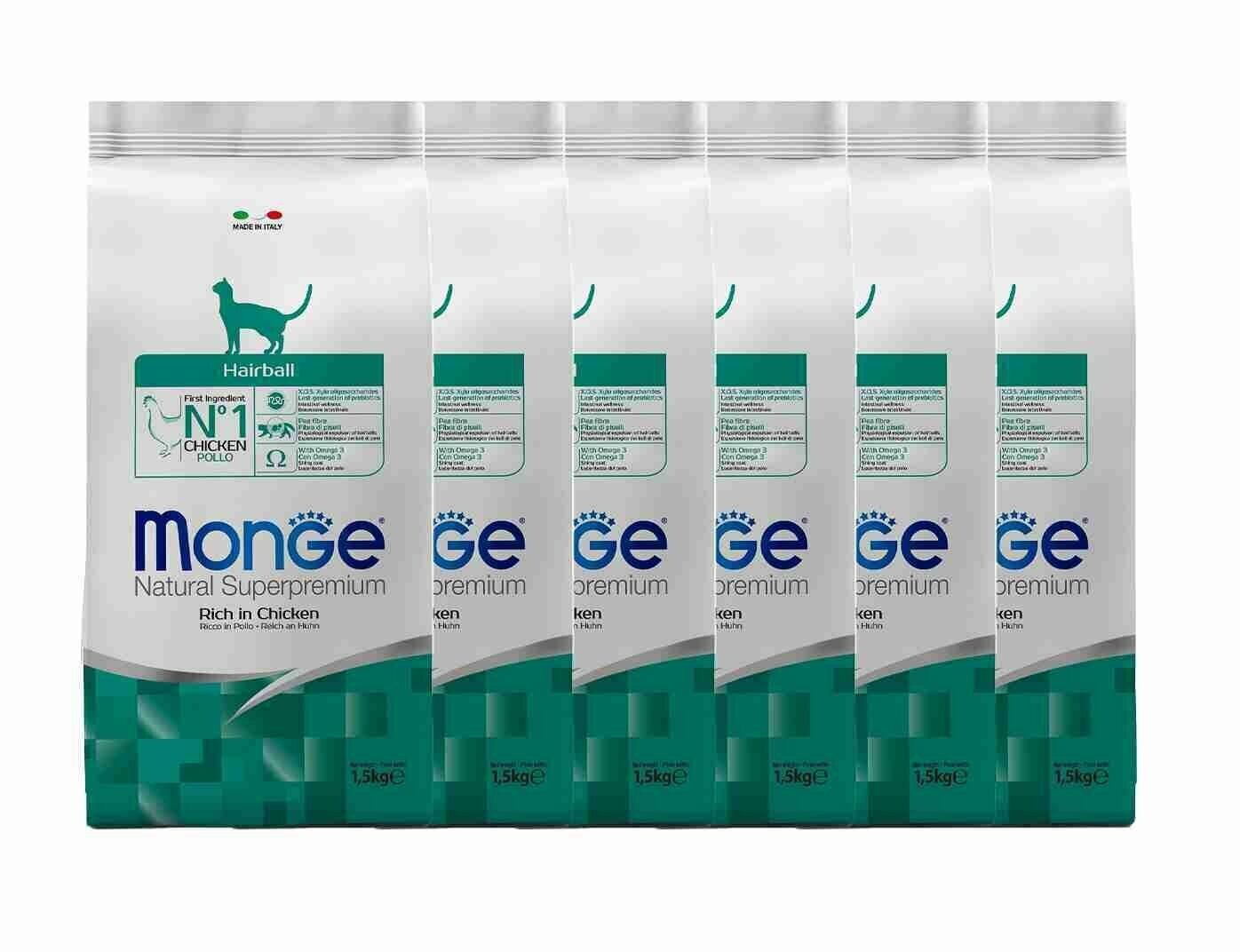 Сухой корм для кошек Monge Natural Superpremium, для вывода шерсти, с курицей 6 шт. х 1.5 кг