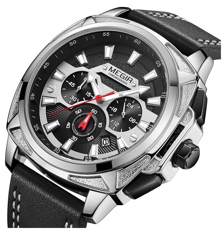 Лучшие цены. Megir 2128G (S/B/R) - это мужские наручные часы выполненный в классическом стиле. Аксессуар прекрасно подходит для делового стиля и повседневной одежды. Циферблат выполнен в черном цвете, однако присутствуют декоративные серый и красные элементы, которые добавляют яркости дизайну, и делают его менее официальным. Особенности часов Megir 2128G (S/B/R) Крепкий корпус Высокоточный кварцевый механизм находится под защитой прочного корпуса из сплава. Магазины в вашем городе.