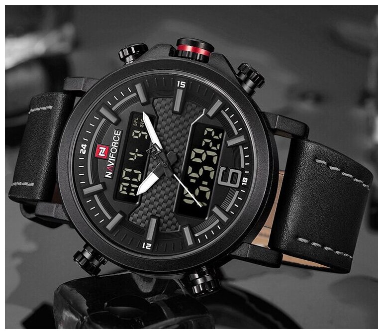 Лучшие цены. Наручные часы Naviforce NF9135 выполнены в современном урбанистическом стиле. В них соединили классический дизайн и спортивный характер. Необычное сочетание дополнительно подчеркнуто нарочито грубым ремешком из натуральной кожи. Отличные часы для тех, кто ищет экстрима даже в аксессуарах. Данная модель отличается наиболее широким функционалом, который включает: двойное отображение времени, секундомер, будильник, ежечасный сигнал, отображение даты и дня недели, подсветку. Магазины в вашем городе.