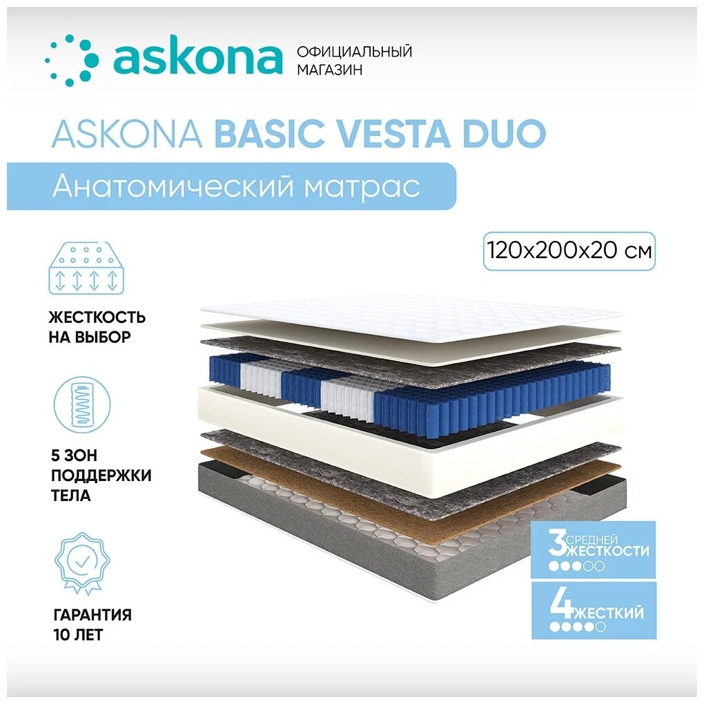 Матрасы Матрас анатомический Askona (Аскона) Basic Vesta Duo 120х200