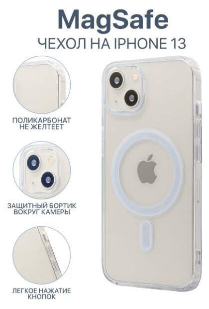Чехлы для мобильных телефонов Чехол для Apple iPhone 13 с поддержкой MagSafe/ Айфон 13, Эпл Айфон 13/прозрачный противоударный силиконовый чехол Магсейф