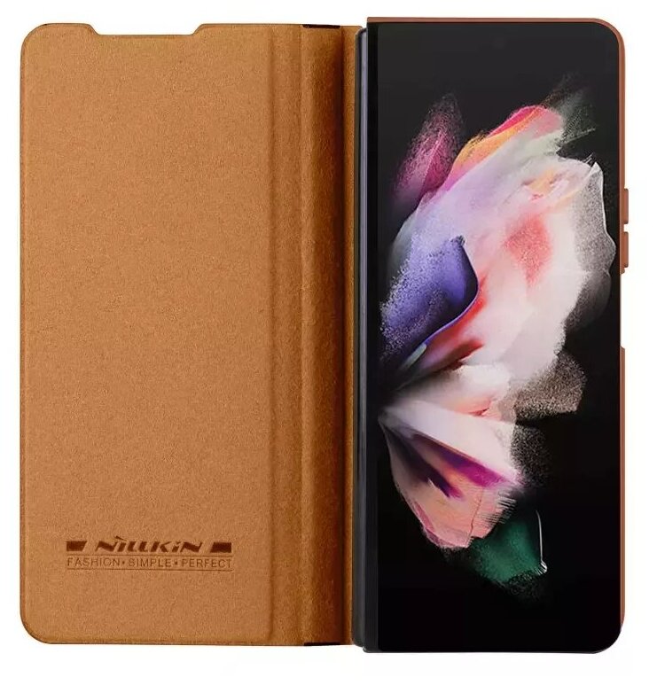 Чехлы для мобильных телефонов Кожаный чехол-книжка Nillkin Leather Qin Pro для Samsung Galaxy Z Fold 4 коричневый