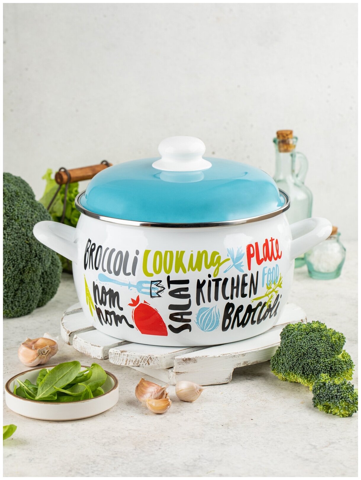 Кастрюля Кастрюля эмалированная с крышкой, Брокколи, METROT, 5,3л, 7349