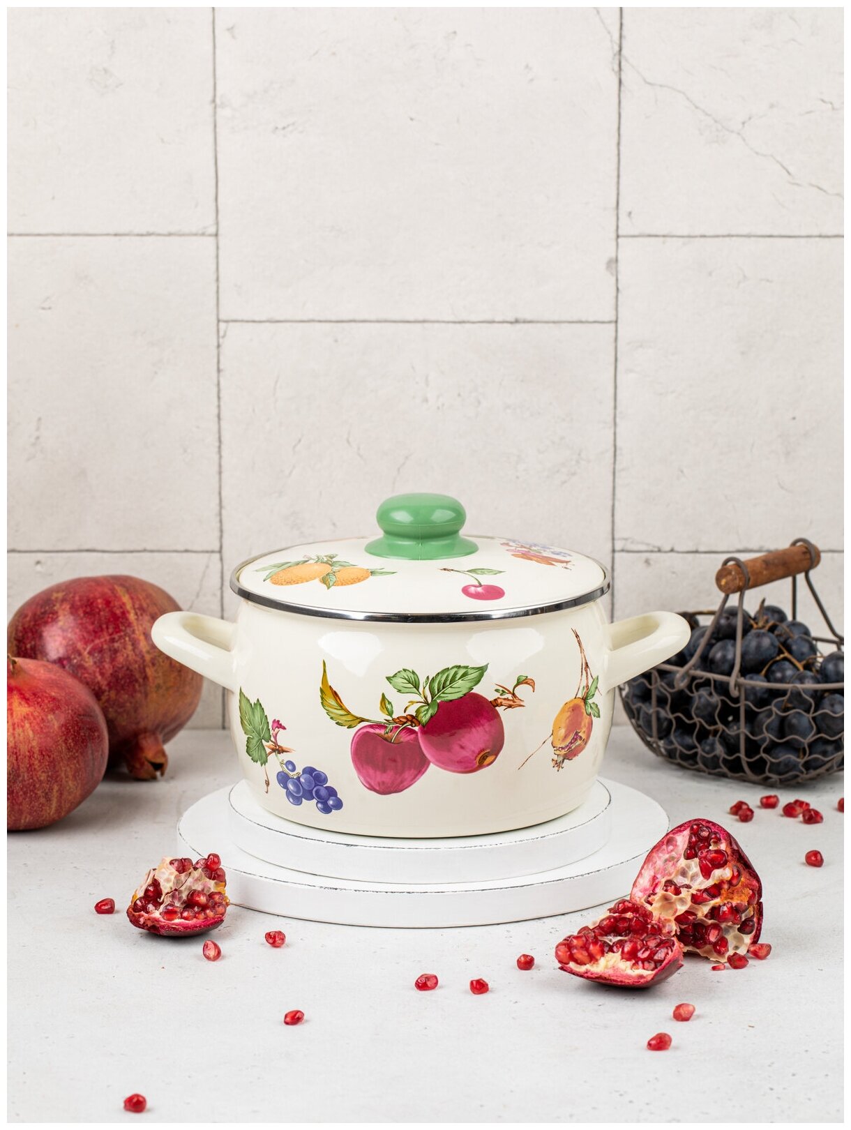 Кастрюли Кастрюля глубокая эмалированная с металлической крышкой, 5,3л."Фрукты"