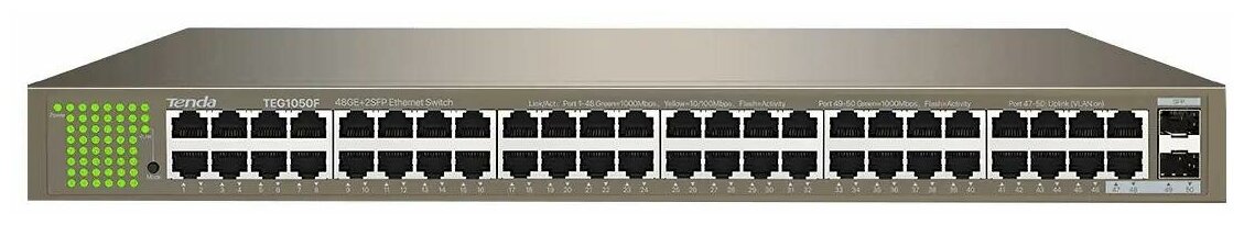 Коммутатор TENDA TEG1050F, 48 гигабитных портов, 2 порта SFP