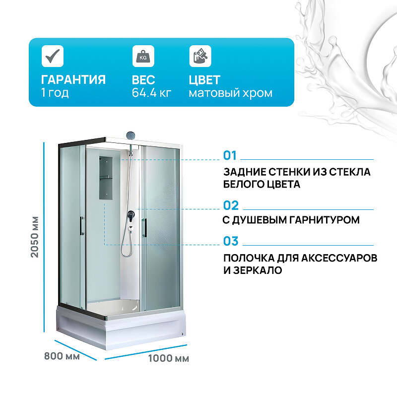 Душевая кабина River Quadro 100x80x26 МТ Б/К 10000002985 профиль Матовый хром задняя стенка Белая