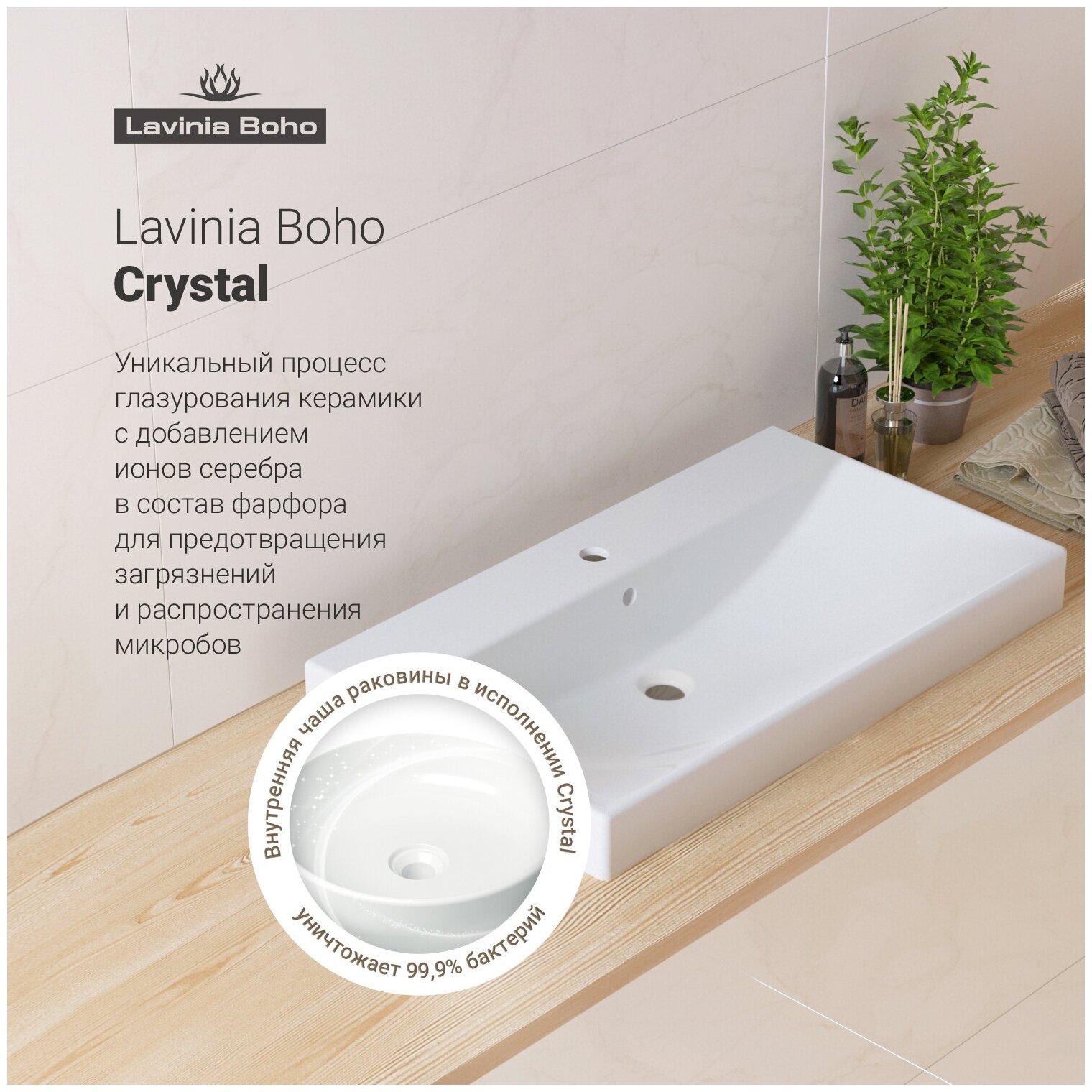 Умывальники Комплект 3 в 1 Lavinia Boho Bathroom Sink 21520640: врезная фарфоровая раковина 80 см, металлический сифон, донный клапан