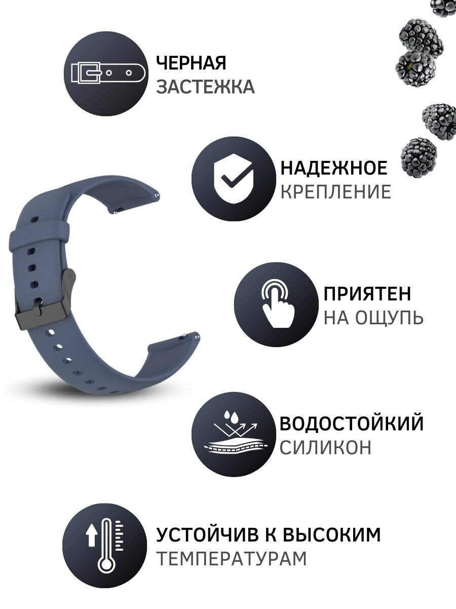 Силиконовый ремешок для Huawei Watch 3 / 3Pro / GT 46mm / GT2 46 mm / GT2 Pro / GT 2E 46mm (черная застежка) 22 мм, темно-синий 592 ₽ Подробнее