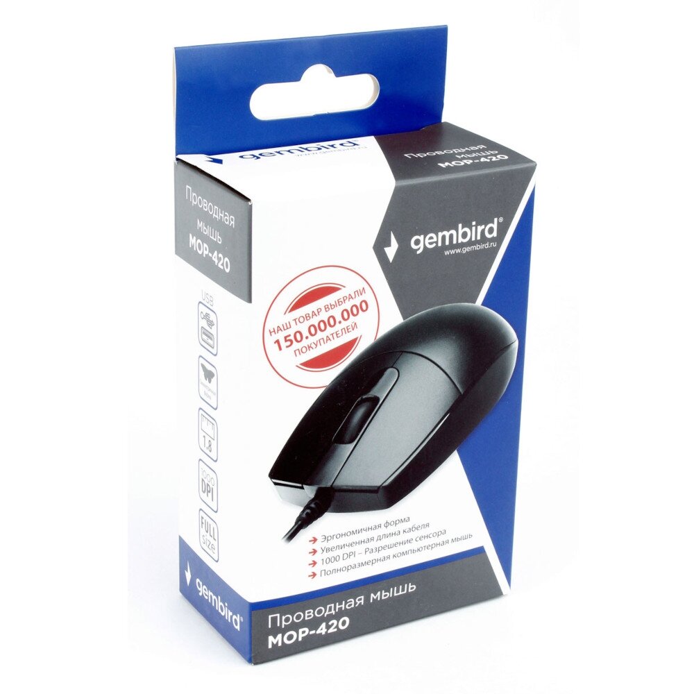 Мышь компьютерная Gembird MOP-420, USB, черный, 1000 DPI, кабель 1.8м