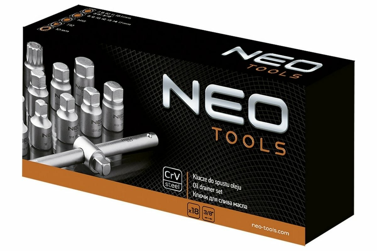 Биты и торцевые головки NEO Tools Головки для слива масла 3/8, набор 18 шт. 11-235
