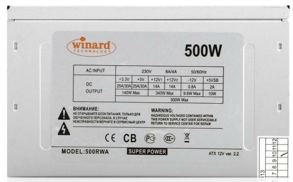 Блок питания Блок питания ATX 500 Вт Super Power Winard 500W