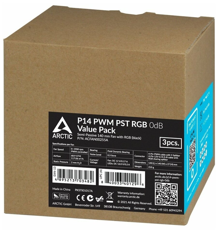 Вентилятор корпусной ARCTIC P14 PWM PST RGB 0dB Value Pack) 3pcs - retail (ACFAN00255A)