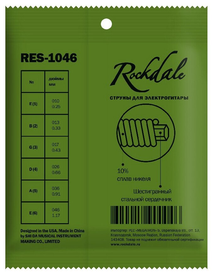 ROCKDALE RES-1046 Струны для электрогитары с шестигранным сердечником и никелевым покрытием. Цветная бобышка в основании струны соответствует номеру с 556 ₽ Подробнее