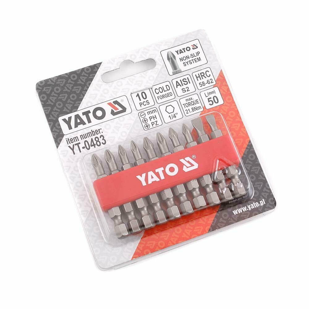 Биты и торцевые головки Набор бит YATO 1/4 10 предметов YT-0483