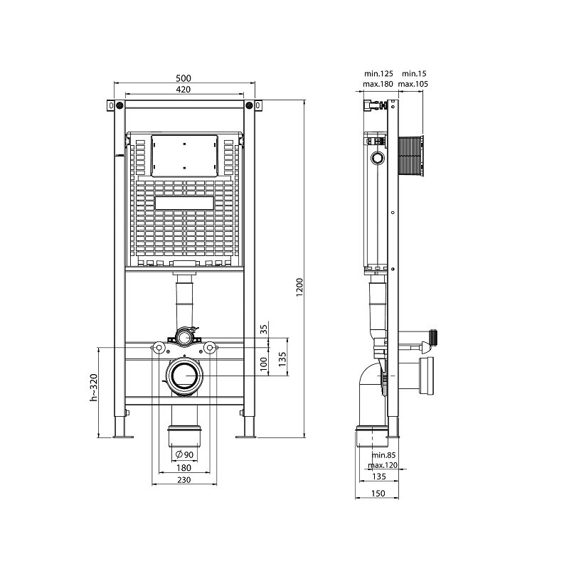Система инсталляции для подвесного унитаза Koller Pool Alcora ST1200 без панели смыва