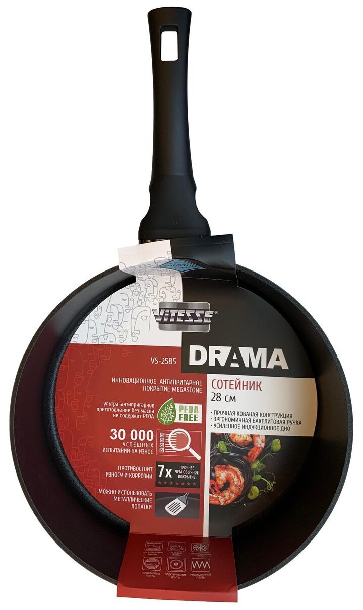 Лучшие цены. Сотейник (серия Drama) Материал корпуса - высококачественный кованый алюминий Толщина стенок, мм - 2.5-4.0 Внутреннее покрытие - Инновационное антипригарное покрытие повышенной прочности MEGASTONE (Korea) Внешнее покрытие - термостойкое Дно - антидеформационный диск Ручки - бакелитовые с покрытием Soft-Touch Упаковка - цветной рукав Можно мыть в посудомоечной машине - да Диаметр, см - 28 Высота бортов - 8,0 см Особые характеристики Уникальная форма кованой конструкции Инновационное антипригарное покрытие. Магазины в вашем городе.