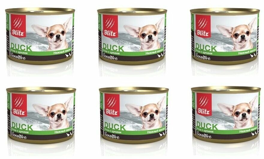 Консервы Blitz Sensitive Adult паштет утка с цукини для собак (200 г*6шт)