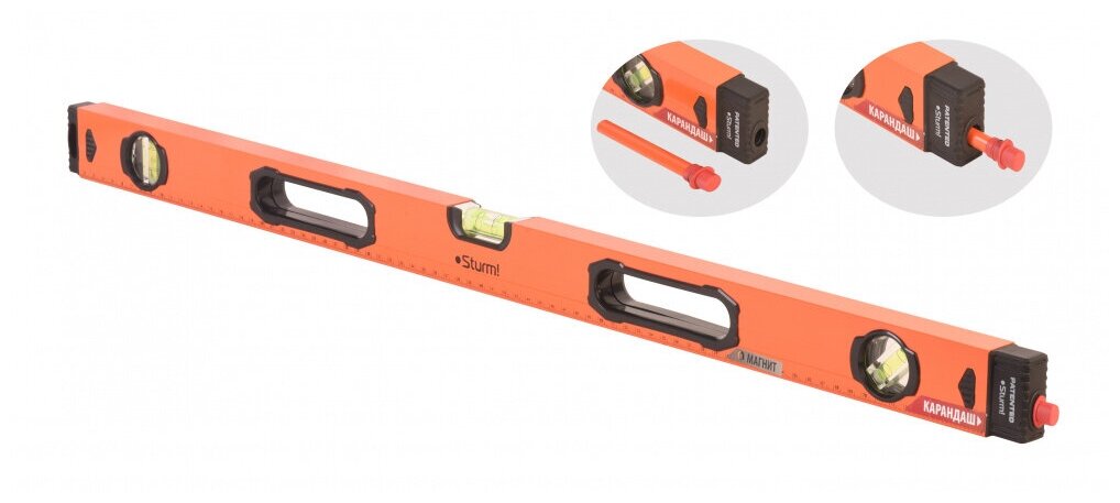 Уровень / правило Уровень 800мм STURM 2015-09-800 усилен., магнитн, 3 глазка, карандаш