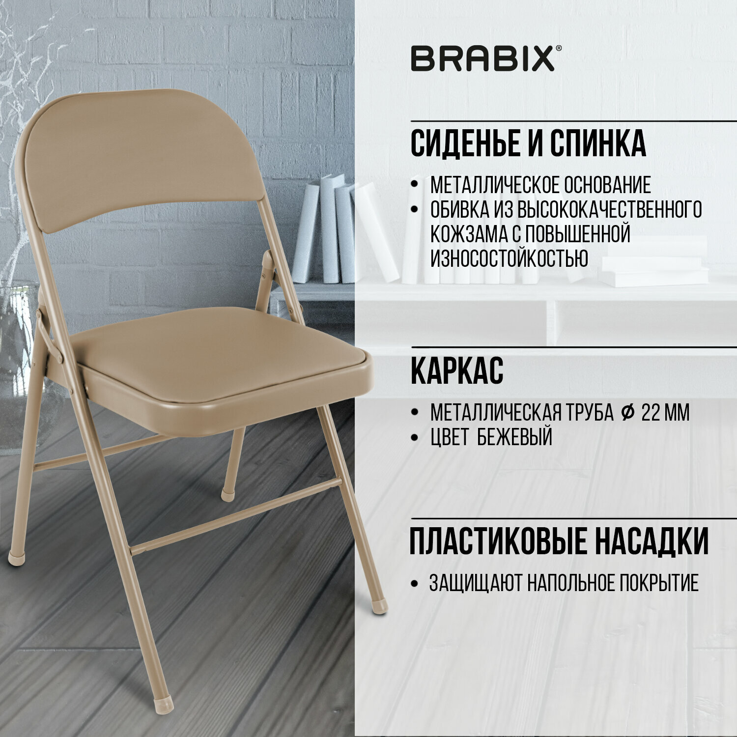 Стул Стул складной для дома и офиса BRABIX Golf Plus CF-003 комфорт, бежевый каркас, кожзам бежевый, 531567