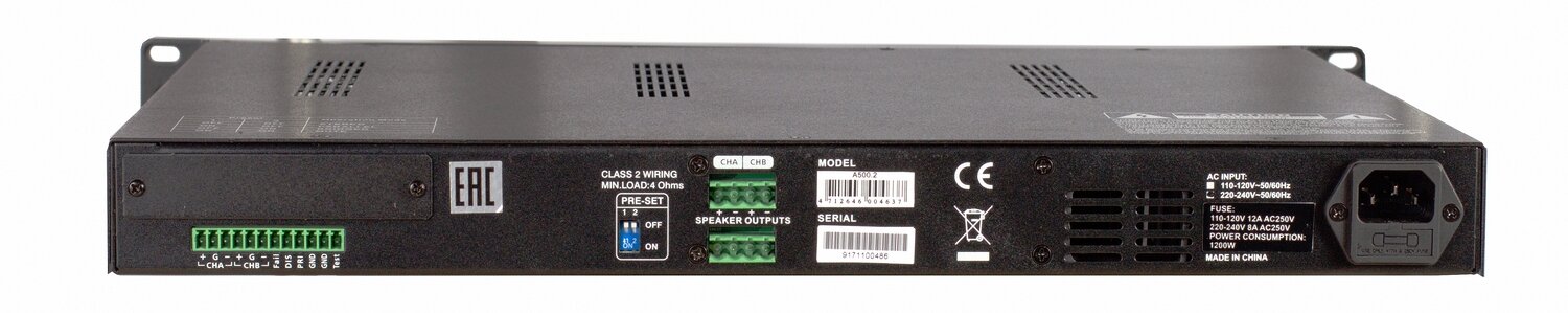 Лучшие цены. Усилитель мощности. Количество каналов: 2. Класс усилителя: D. Мощность: 2х600 Вт (4 Ом), 900 Вт (мост, 8 Ом). Частотный диапазон: 0.2-20 кГц. THD+N: < 0.1%. Дэмпинг-фактор: > 200. Входы/выходы: Euroblock. Опционально: карты Ultimo/DSP/VAS/Erp. Габариты: 483x44x360 мм. Вес: 5.1 кг. Страна торговой марки: Китай. Магазины в вашем городе.