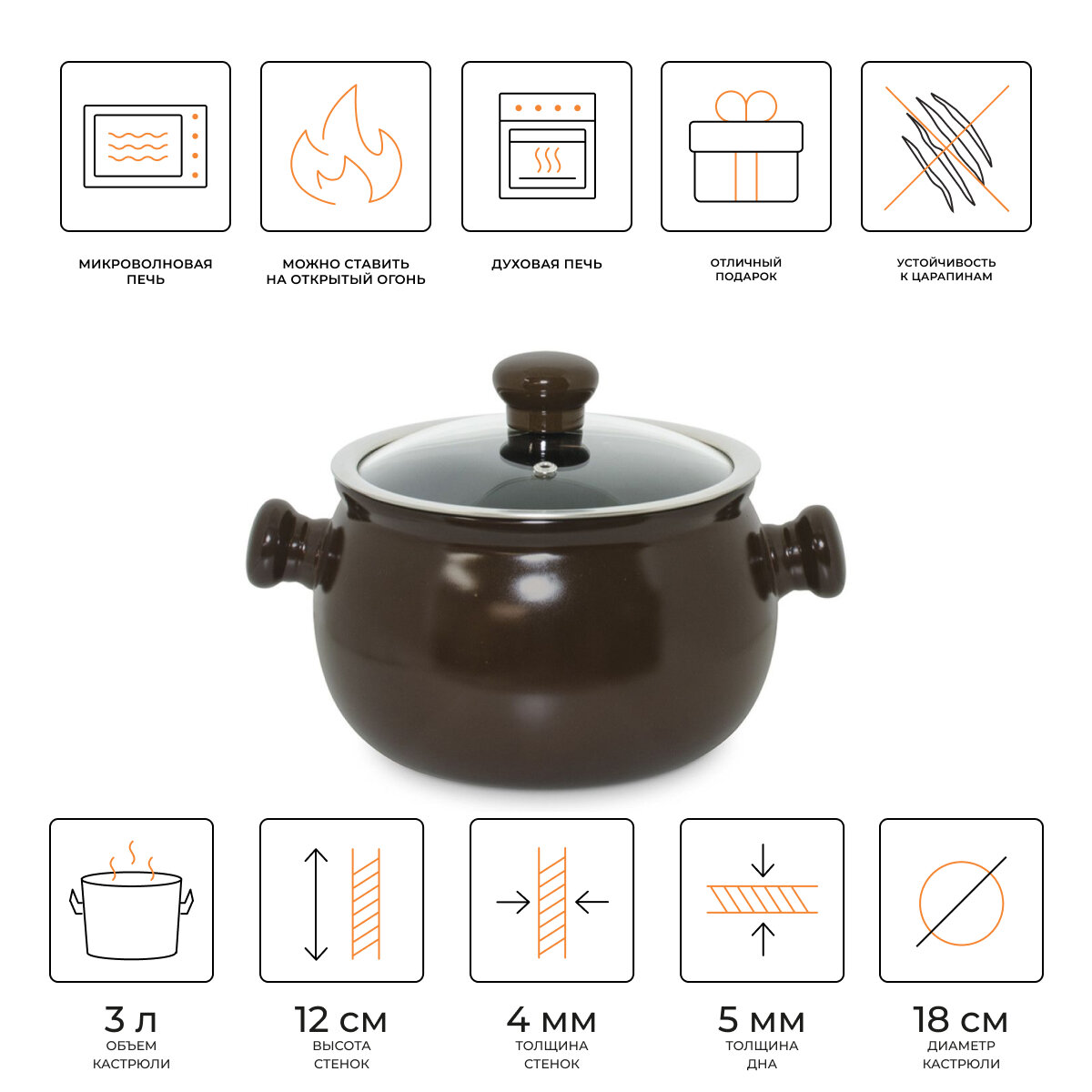 Кастрюля Кастрюля керамическая со стеклянной крышкой Ceraflame Premiere 18 см, 3 л, шоколад