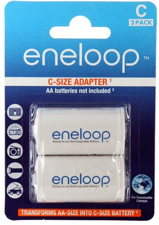 Лучшие цены. Артикул № 621878 Типоразмеры АА или ААА составляют 85% рынка, но существует спрос на элементы питания других типоразмеров. Одним из следующих по популярности является типоразмер C, который используется, например, в больших фонарях или портативных радиоприемниках. Для таких случаев, в модельном ряду аккумуляторов eneloop присутствуют пластиковые адаптеры C - Panasonic Eneloop Ni-MH (2 шт) BQ-BS2E/2E, которые позволяют трансформировать аккумуляторы АА в C аккумуляторы. Магазины в вашем городе.