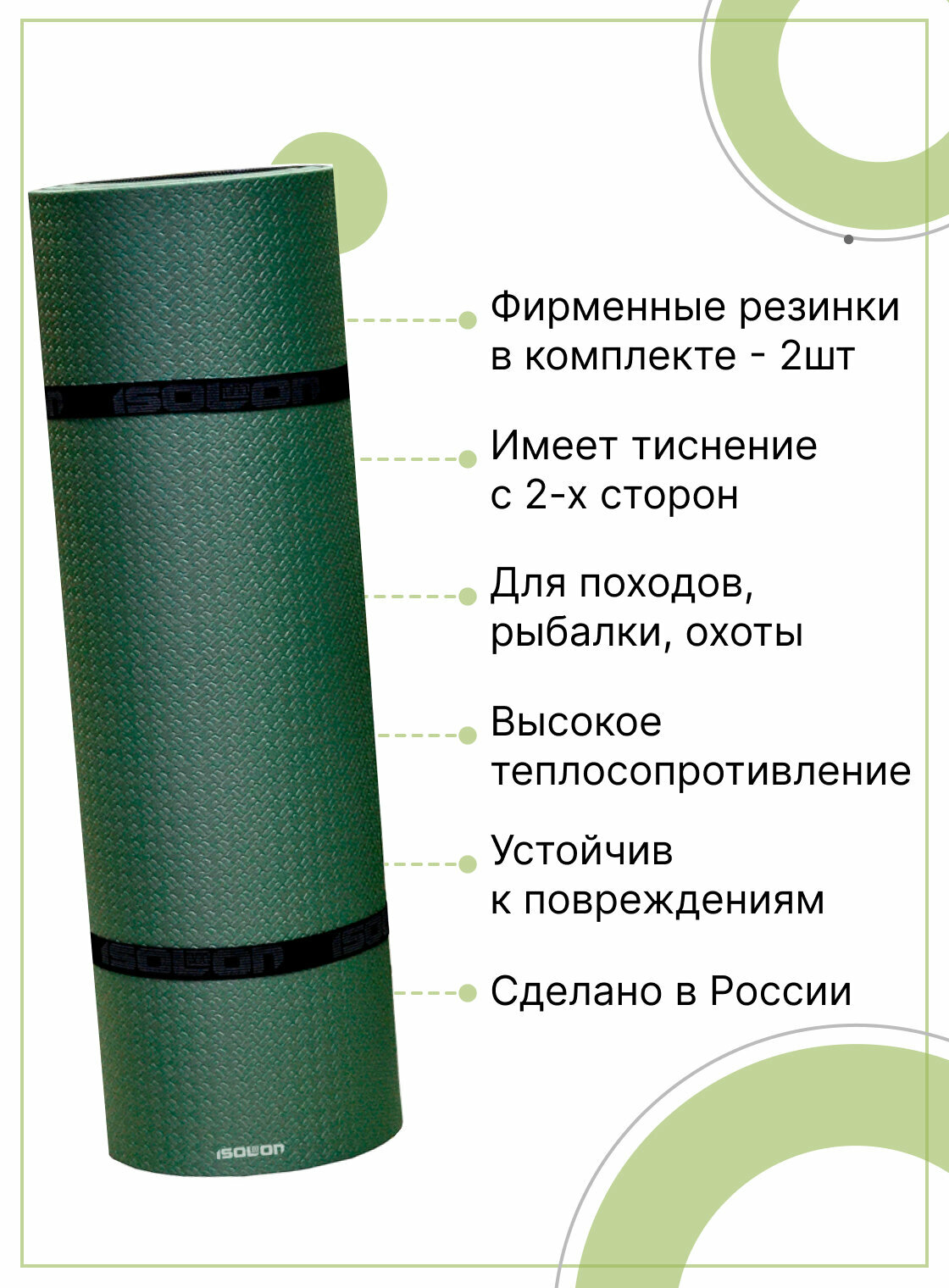 Туристические коврики Коврик для туризма и активного отдыха Isolon Турист Комфорт 180х600х10 мм хаки/серый